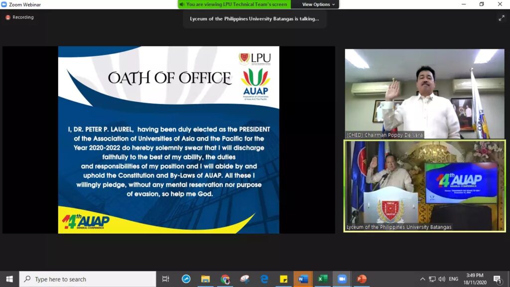 Dr. Peter P. Laurel, as the 16th President of the Association of the Universities of Asia and the Pacific!