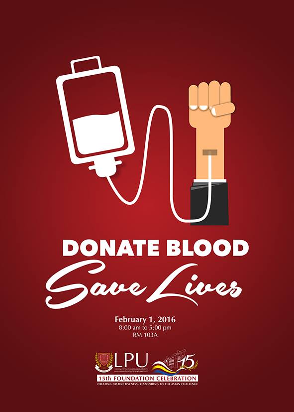 A blood-letting activity will be held on February 1, 2016, PHL Building, Rm. 103 – A from 8:00 a.m. – 5:00 p.m. Be a hero! Donate blood, save lives!