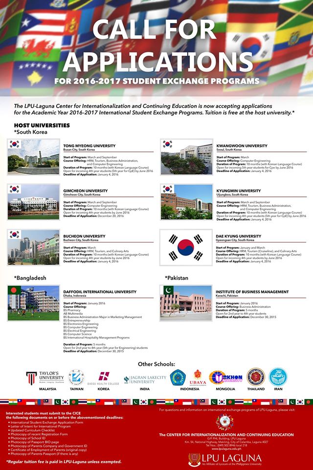 Here’s our treat to all incoming LPU Senior High Students! As part of the 15th Foundation Celebration of LPU Laguna, entrance examinations for incoming Senior High students are for FREE for the whole month until February 27, 2016. Our office is open for examinations any day, from Monday-Friday, 8am-4pm, and Saturday, 8am-12nn. Admissions /…