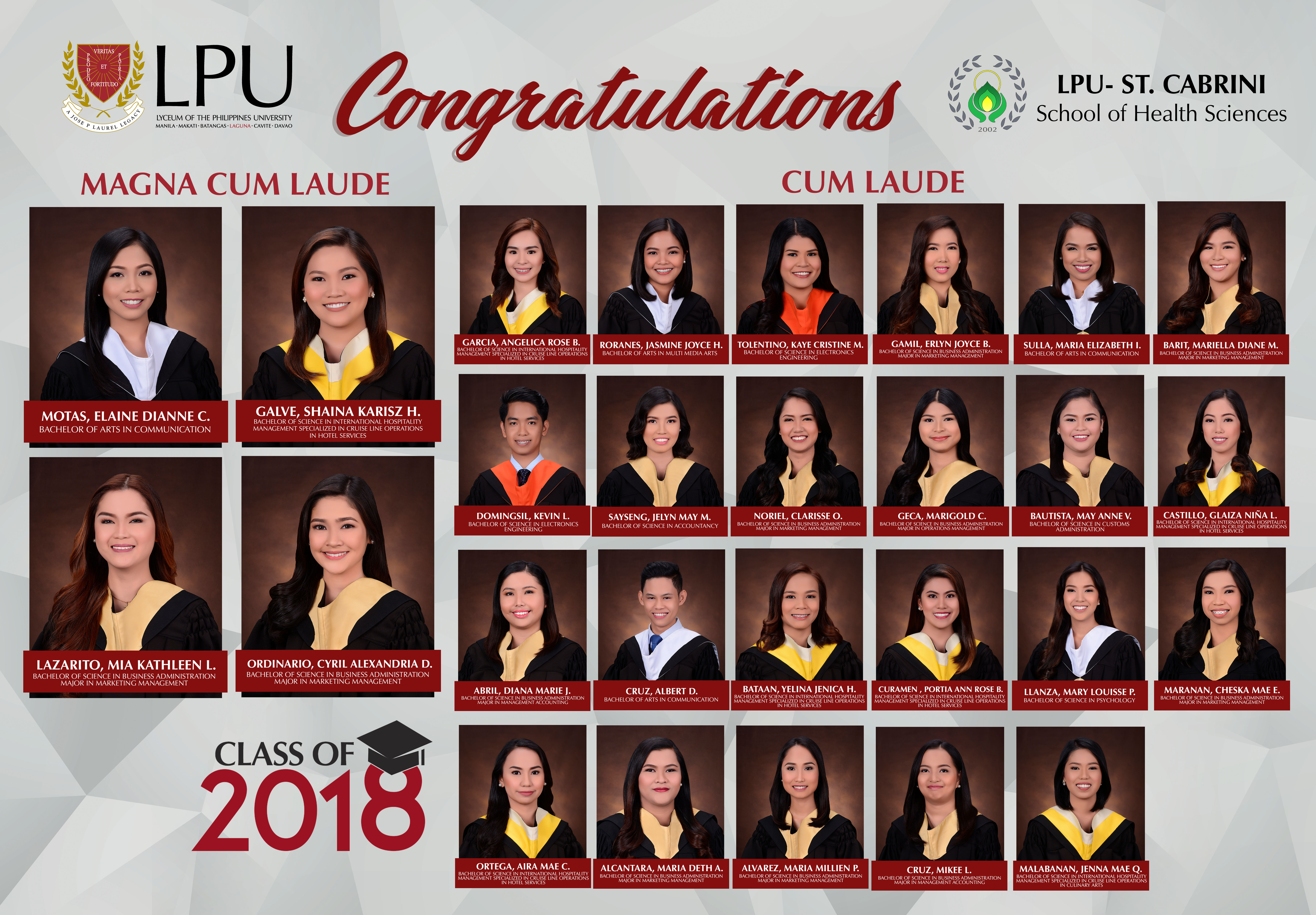 LPU – ST. Cabrini’s Pharmacists Licensure Examination Passers 2018