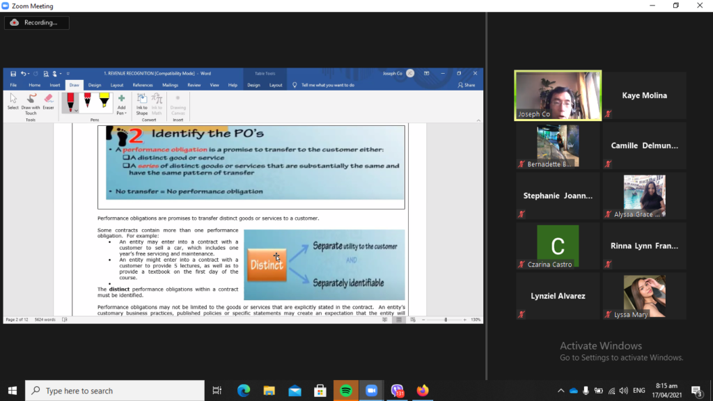 Mr. Joseph Co’s discussion on AFAR with third year BSA students last April 18, 2021.
