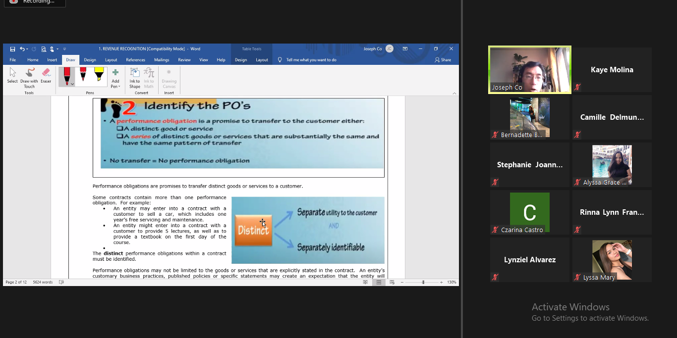 Ms. Gladyleanne Luna, Top 10 of LECPA 2018, discussing Intermediate Accounting 1 to second year students, December 12, 2020.