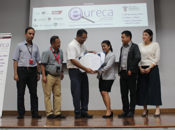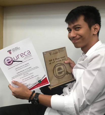 Juan Miguel Alvarez, BSCE4-1, won the Best Paper Award during the Eureca Conference 2018, Taylors University, Malaysia
