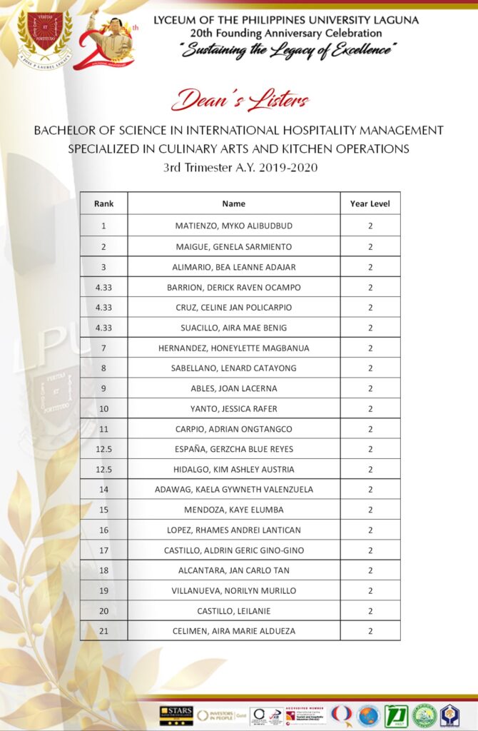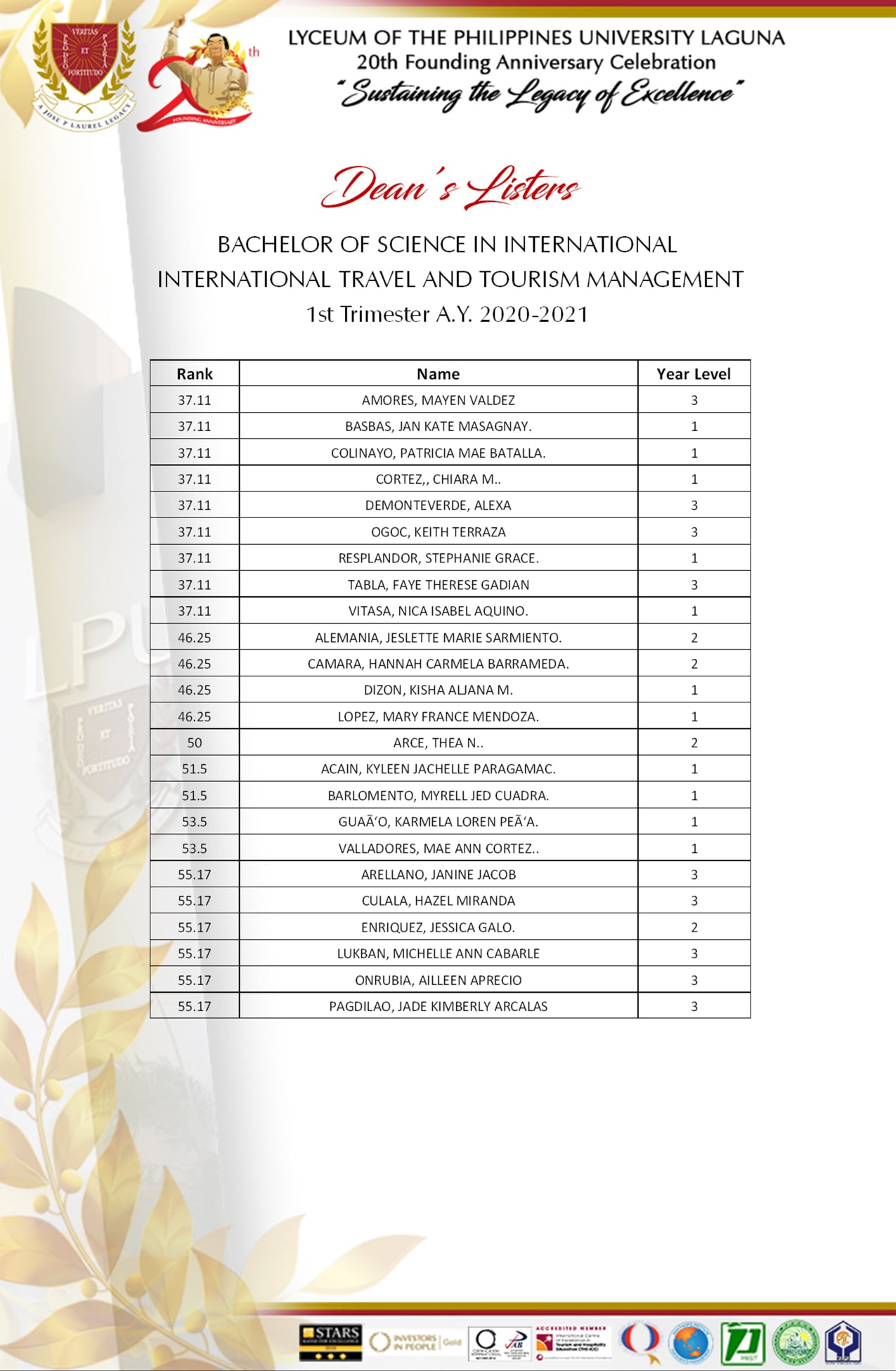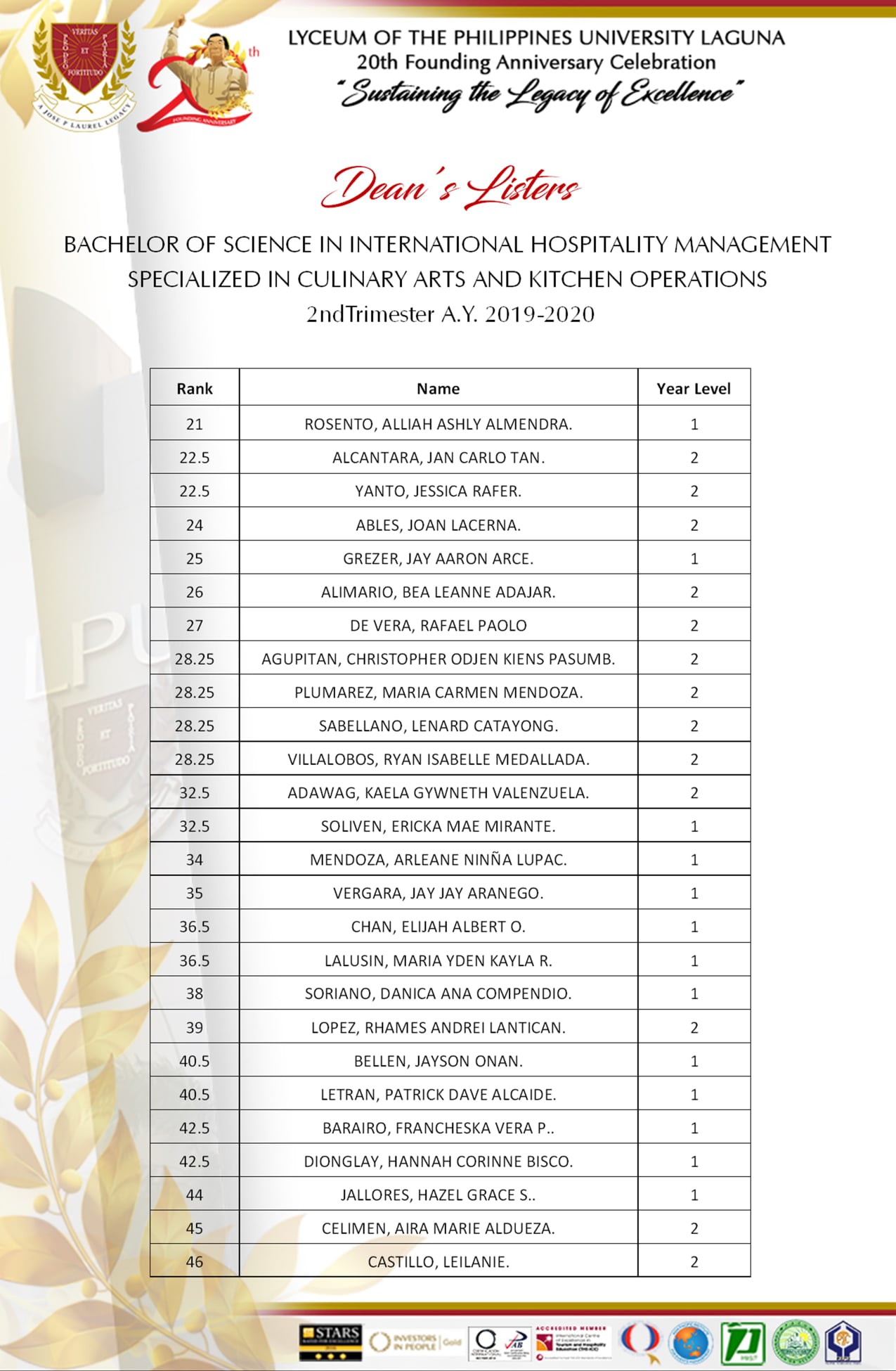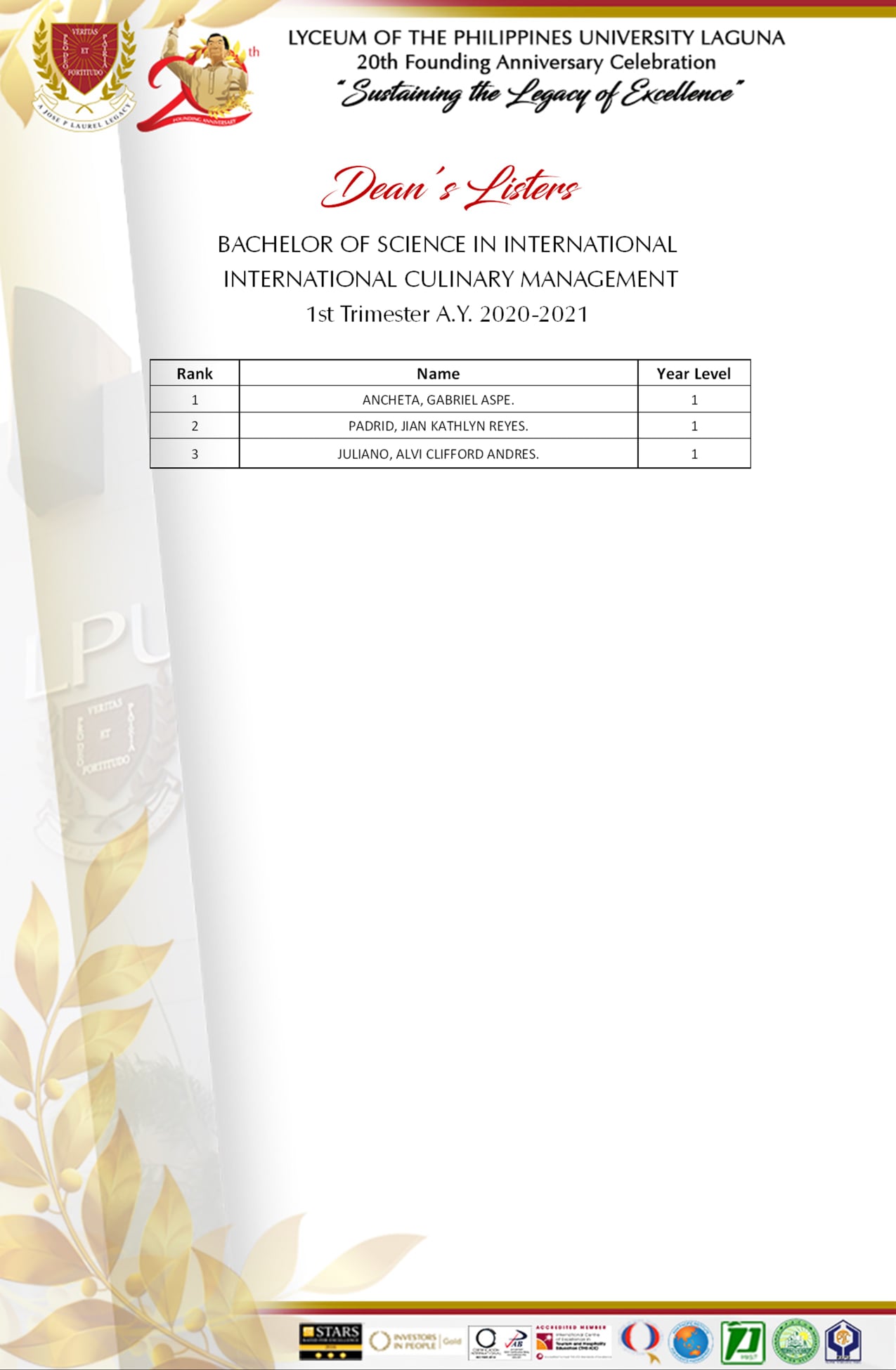 Category: 20th Foundation Celebration, Activity, Dean's Listers RecognitionBy Tristan Jay EstudilloApril 8, 2021 Author: Tristan Jay Estudillo Related postsBridging Minds: Burnout and Balance (LPU-SC Event)June 18, 2021The Joy of Giving: Sustaining Our Commitment to ServeMay 30, 2021Congratulations to Micaella Arcemo, one of the Top 80 delegates to the Ayala Young Leaders Congress 2021May 28, 2021How to Join JUMP-START 2021?May 27, 2021JUMP-START 2021: A Webinar on Job Readiness, and Virtual Career Fair of LPU-LagunaMay 24, 2021Virtual Completion Ceremony AY 2019-2020May 20, 2021