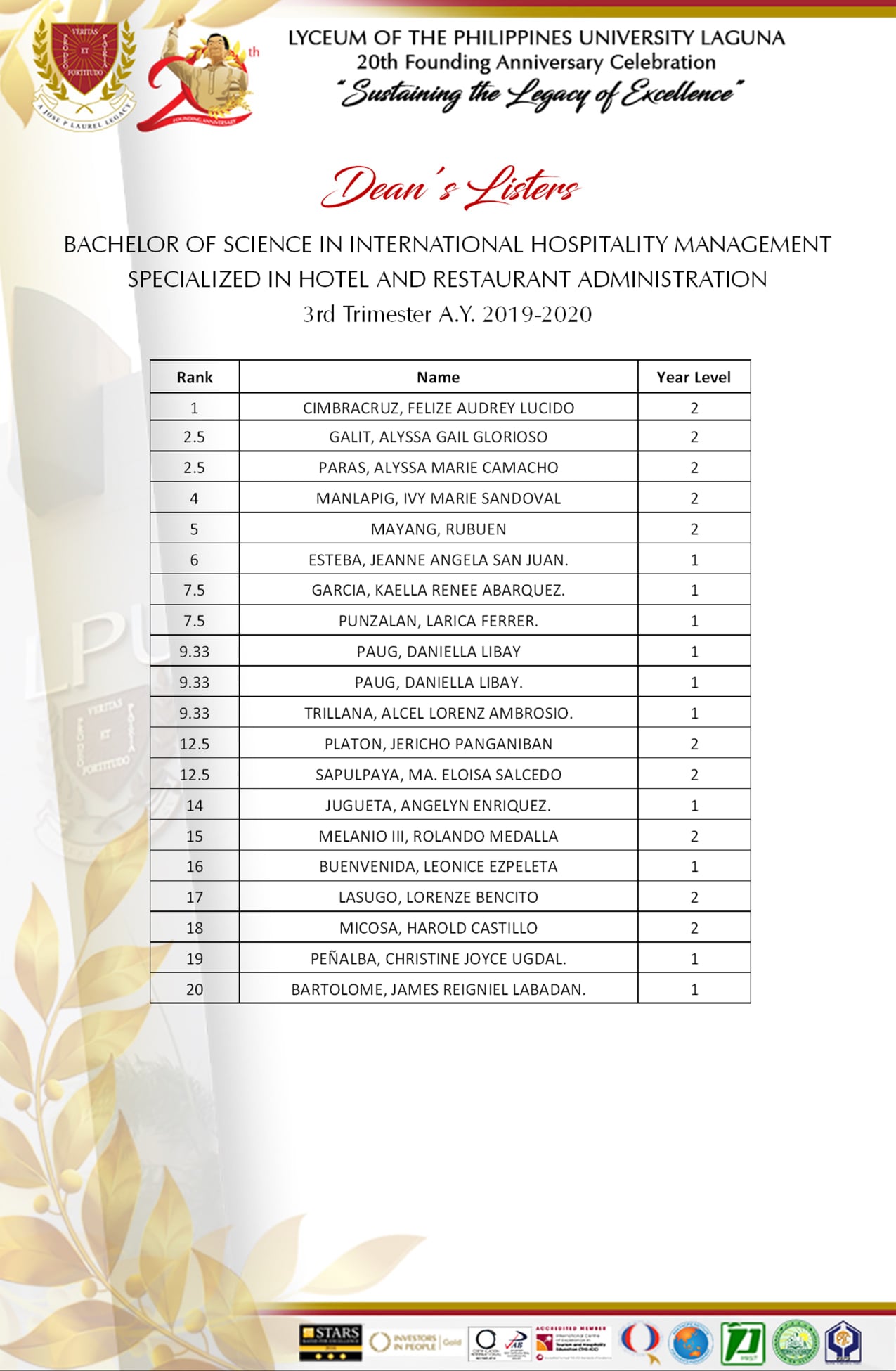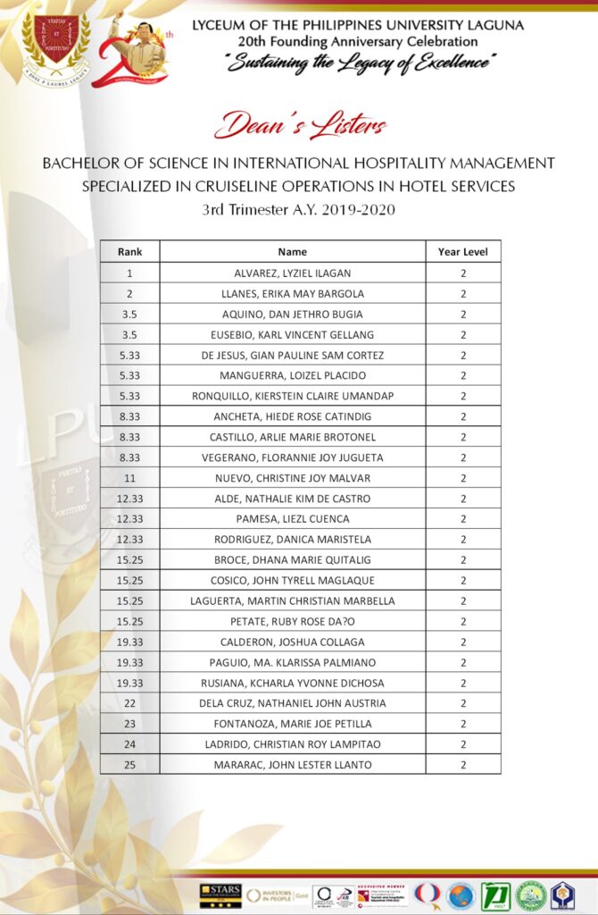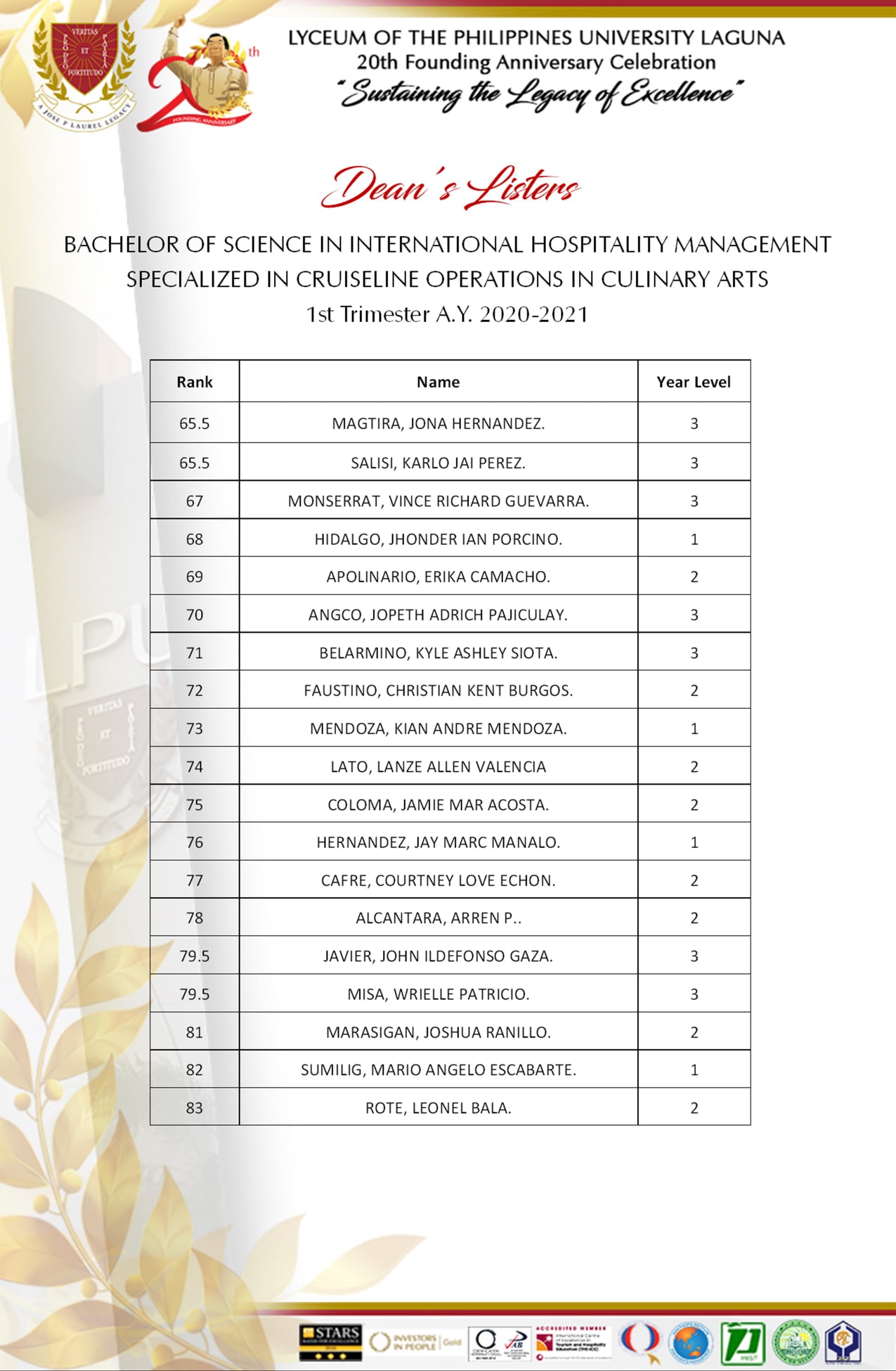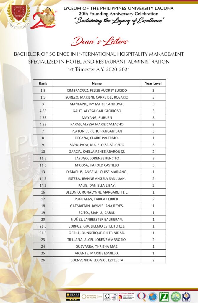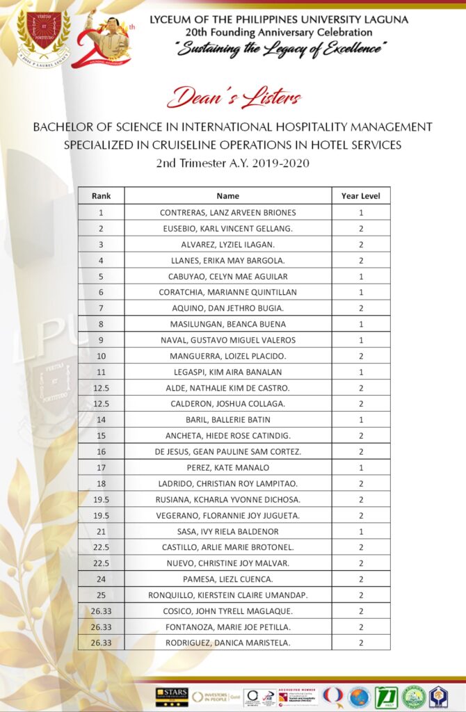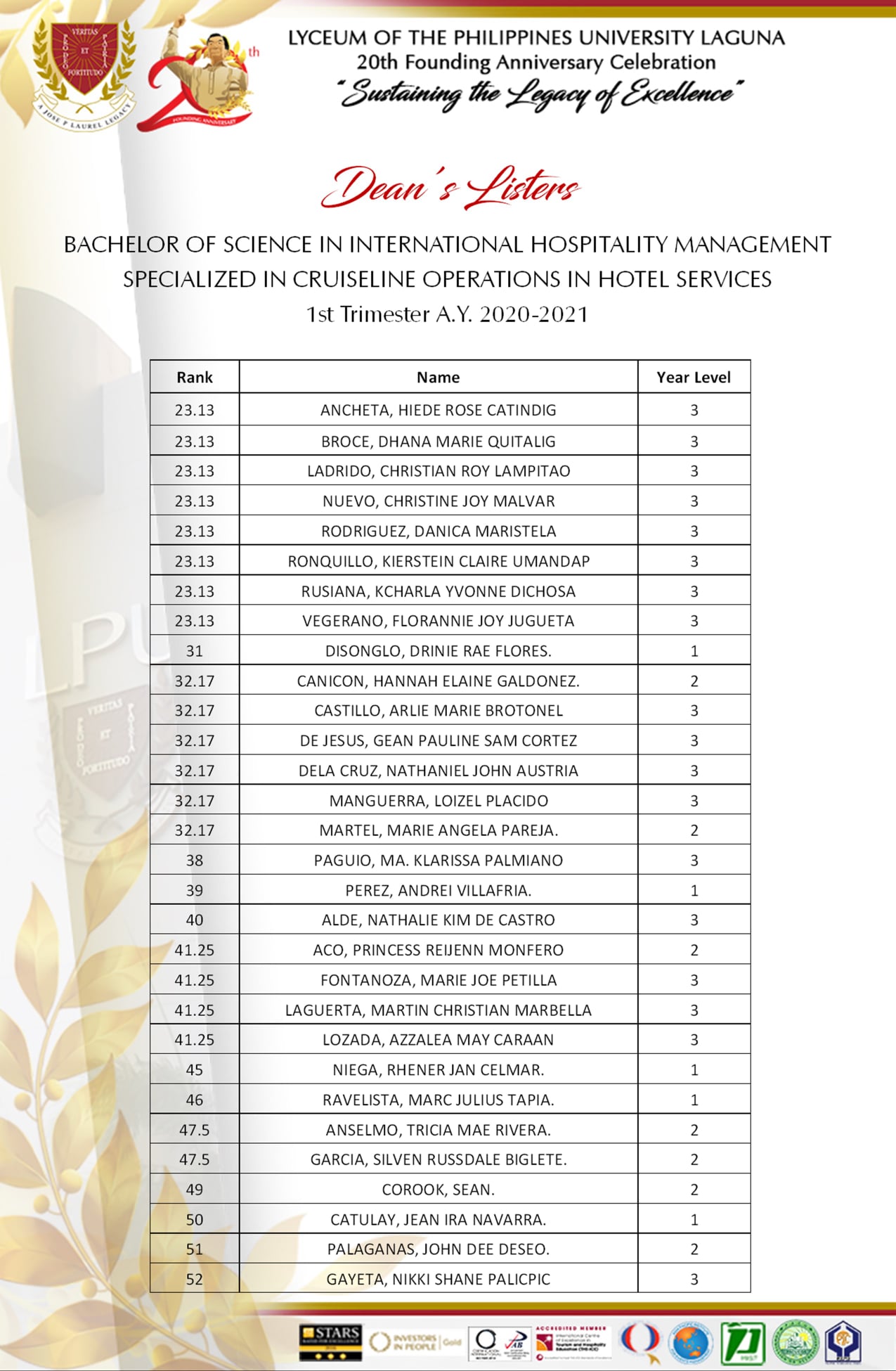 Category: 20th Foundation Celebration, Activity, Dean's Listers RecognitionBy Tristan Jay EstudilloApril 8, 2021 Author: Tristan Jay Estudillo Related postsBridging Minds: Burnout and Balance (LPU-SC Event)June 18, 2021The Joy of Giving: Sustaining Our Commitment to ServeMay 30, 2021Congratulations to Micaella Arcemo, one of the Top 80 delegates to the Ayala Young Leaders Congress 2021May 28, 2021How to Join JUMP-START 2021?May 27, 2021JUMP-START 2021: A Webinar on Job Readiness, and Virtual Career Fair of LPU-LagunaMay 24, 2021Virtual Completion Ceremony AY 2019-2020May 20, 2021