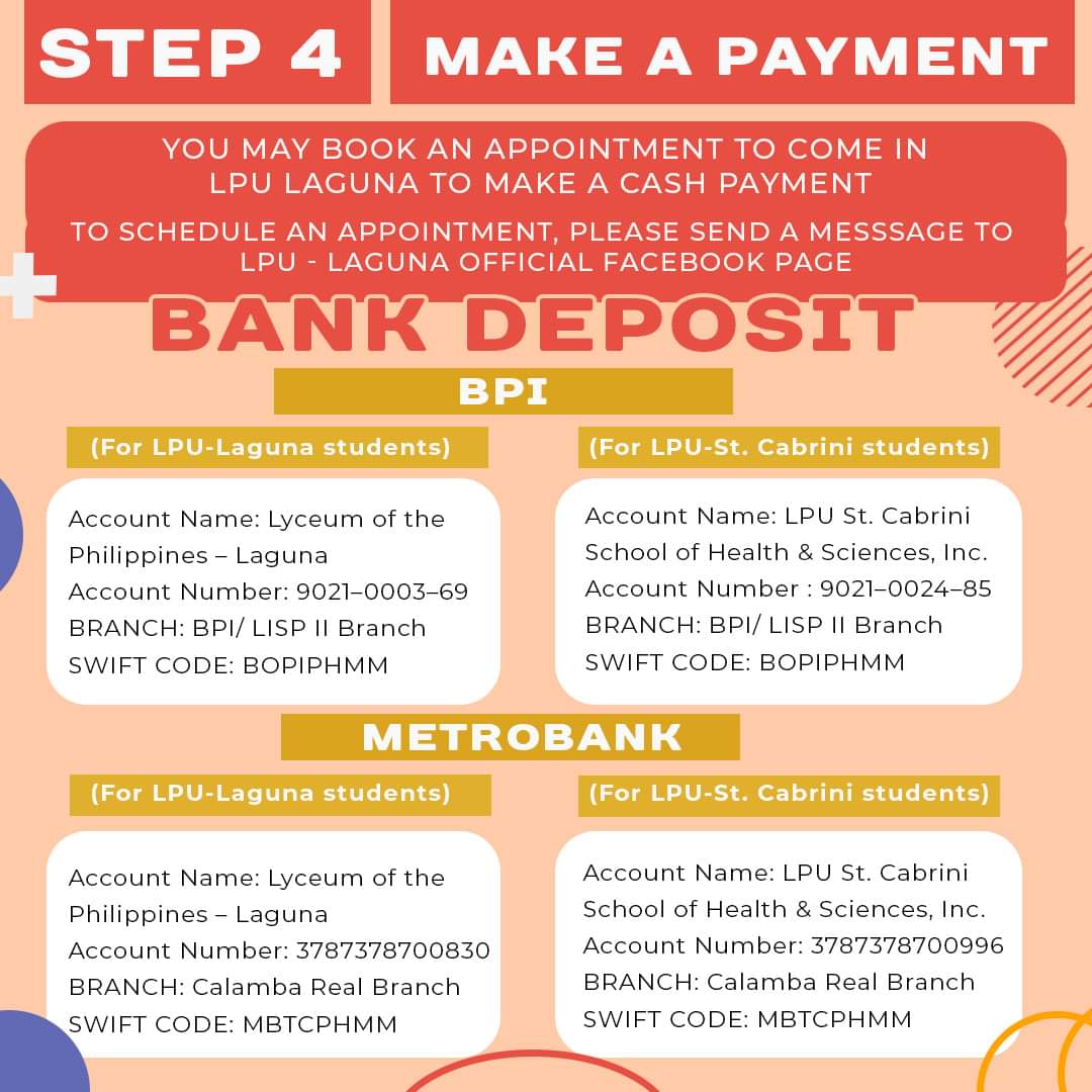 YOU MAY BOOK AN APPOINTMENT TO COME IN LPU LAGUNA TO MAKE A CASH PAYMENT