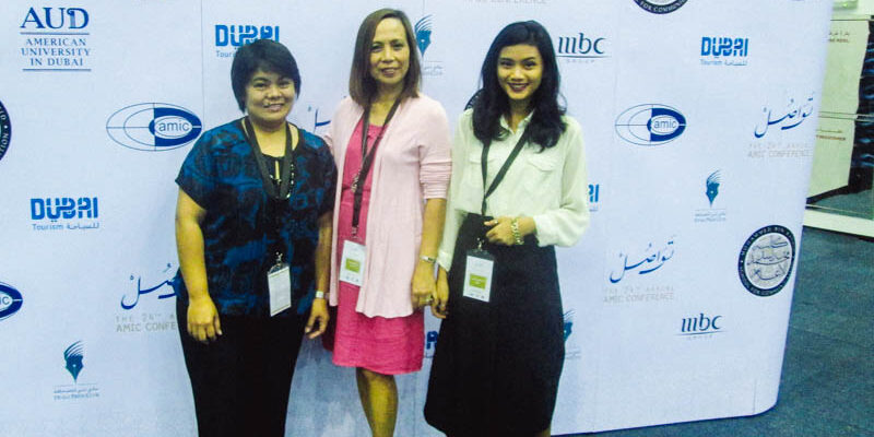 LPU-Laguna delegates headed by Associate Research Director Gerby Muya presented research papers at the 24th Asian Media and Information Centre (AMIC) Conference on June 10-13, 2015 at Mohammed Bin Rashid School for Communication at the American University in Dubai (AUD) Dubai, United Arab Emirates.