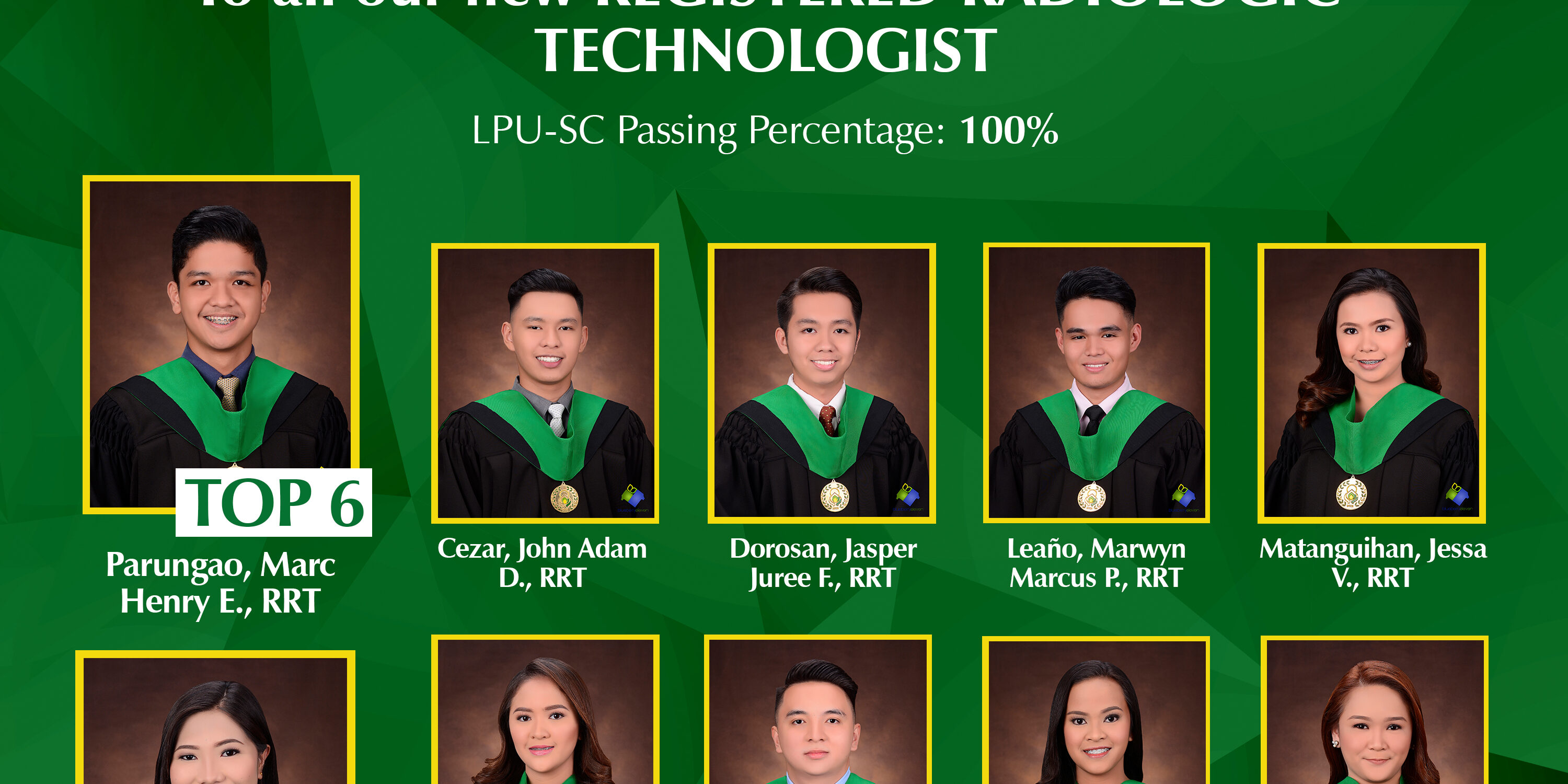 Parungao, Bolalin, of LPU-SC Top Radiologic Technologist August 2018 Board Exam